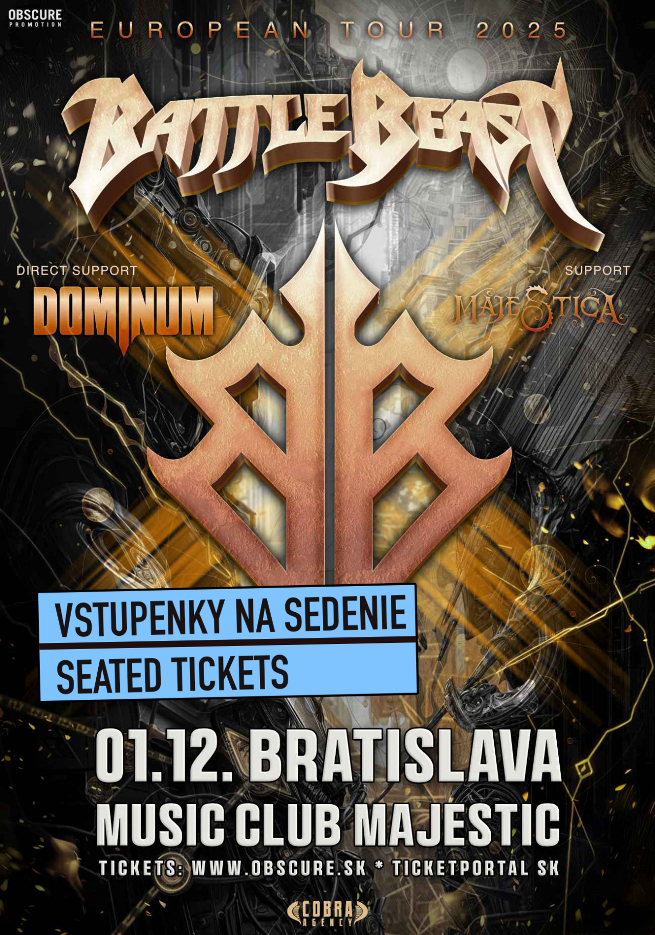 BATTLE BEAST, DOMINUM, MAJESTICA - Bratislava (VSTUPENKY NA SEZENÍ)